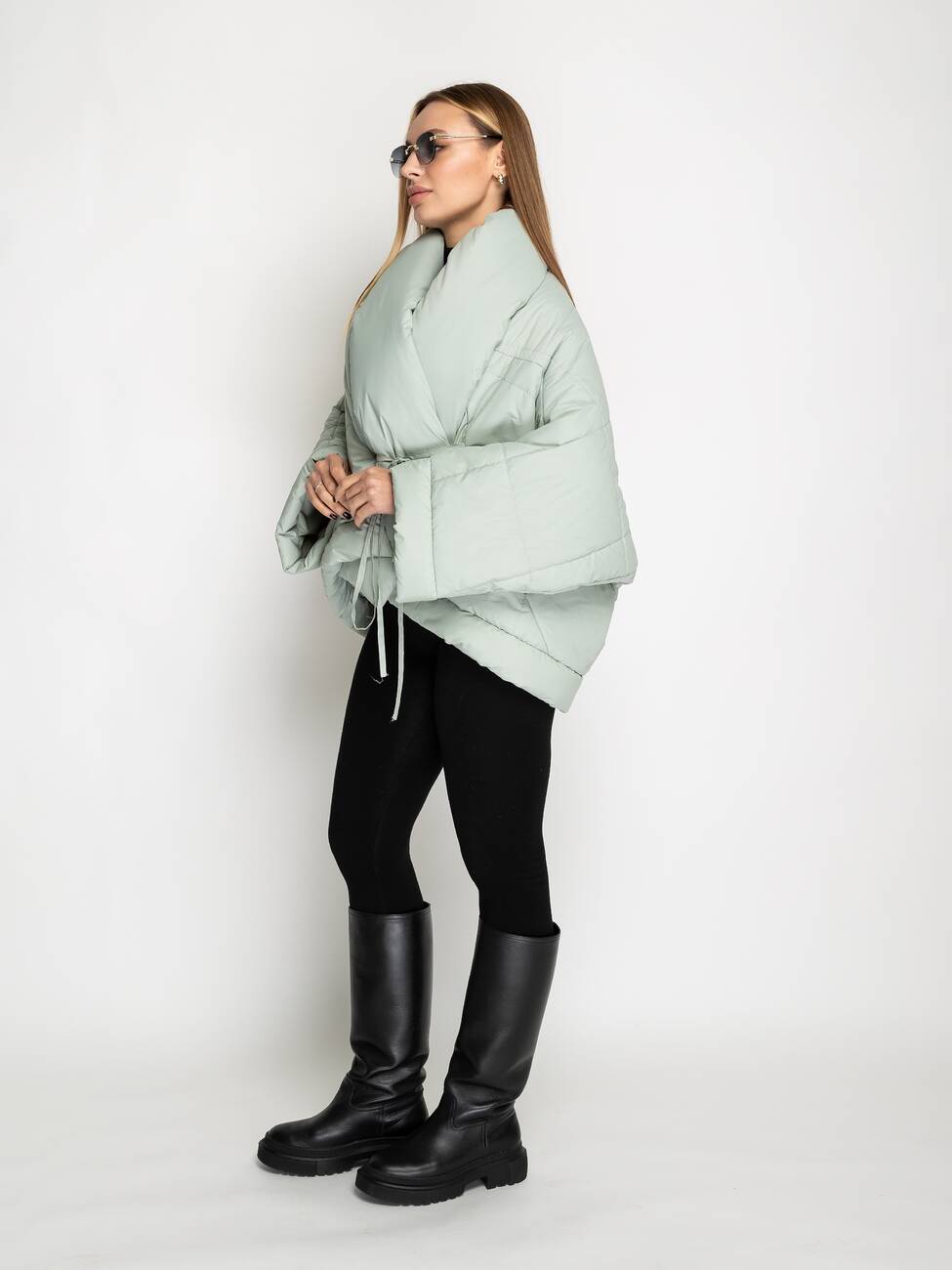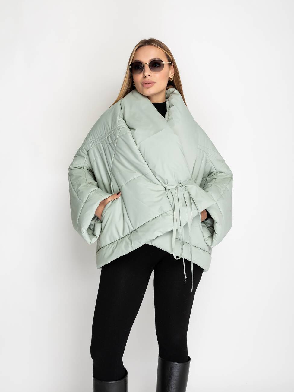 Стильная, модная, в тоже время практичная куртка перевертиш,. Модель выполнена из плащевки, износостойкая. Утеплитель тонкий силикон. Имеется два кармана. Завязывается на длинный шнурок. Длина по спинки 84 см. Длина рукава 63 см.