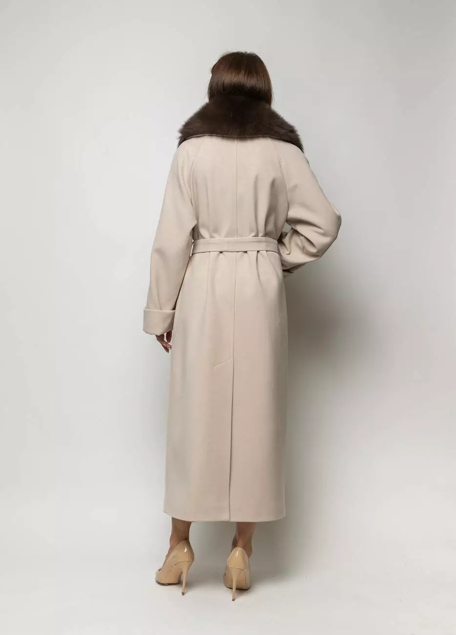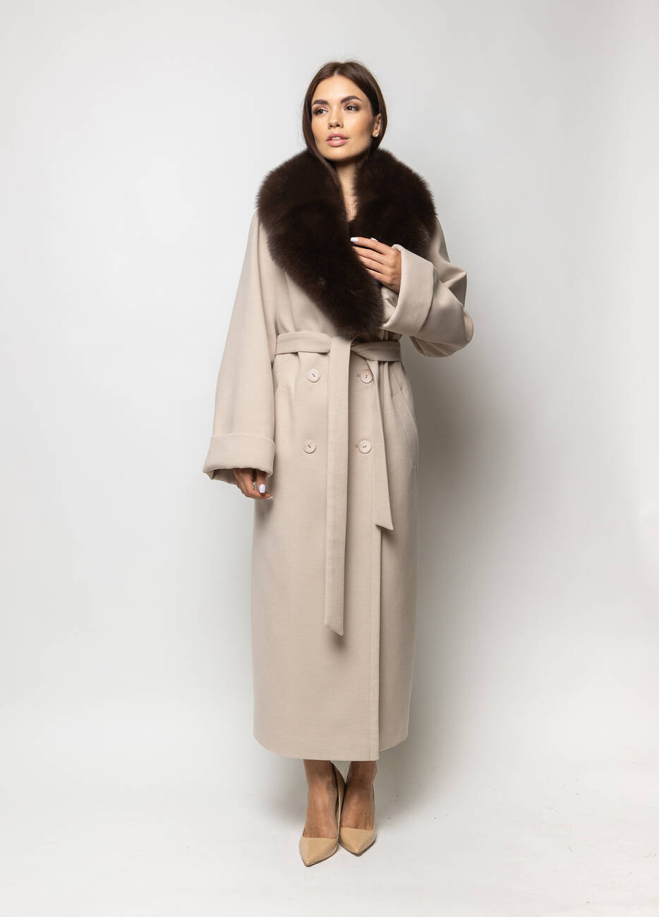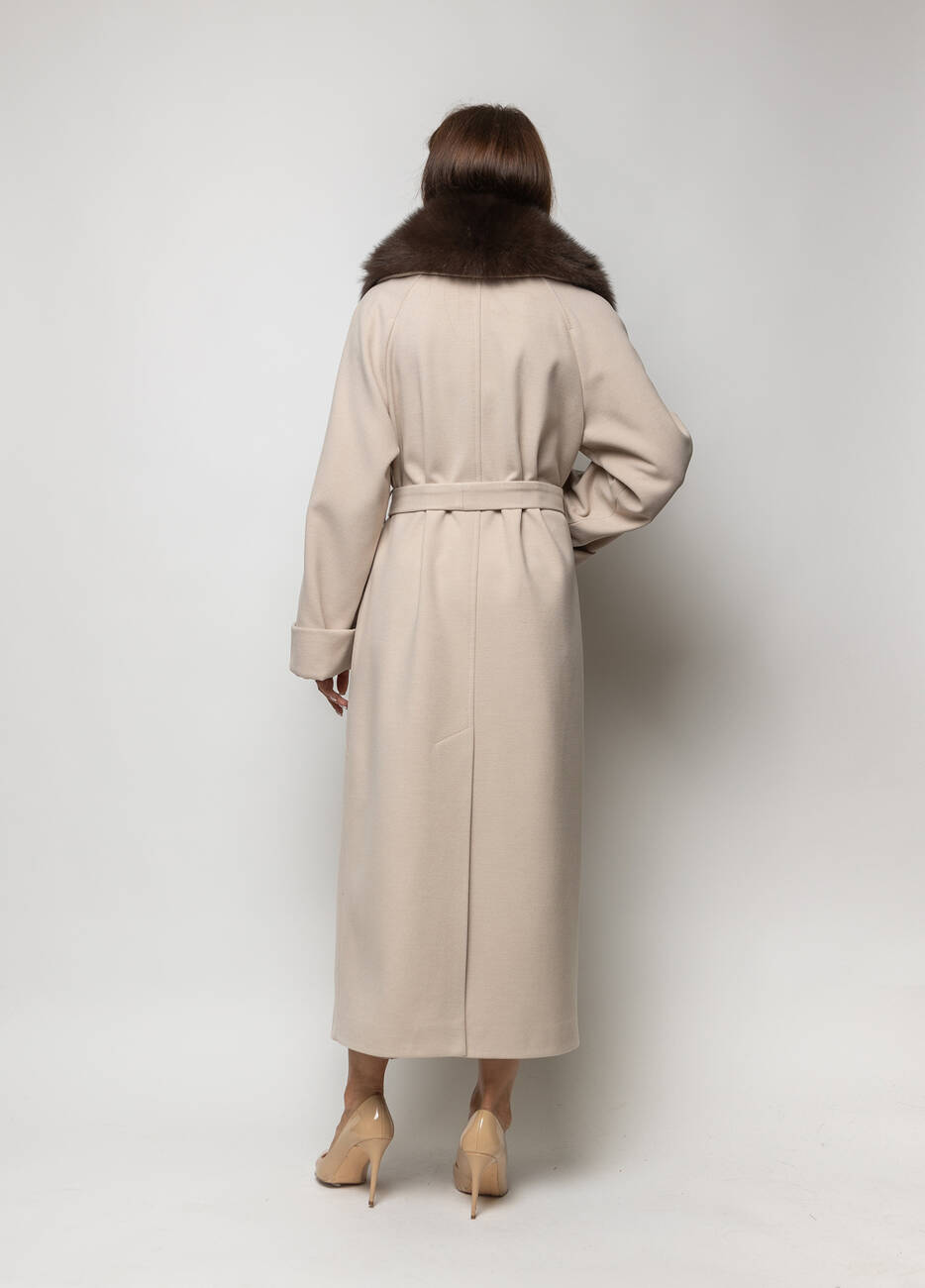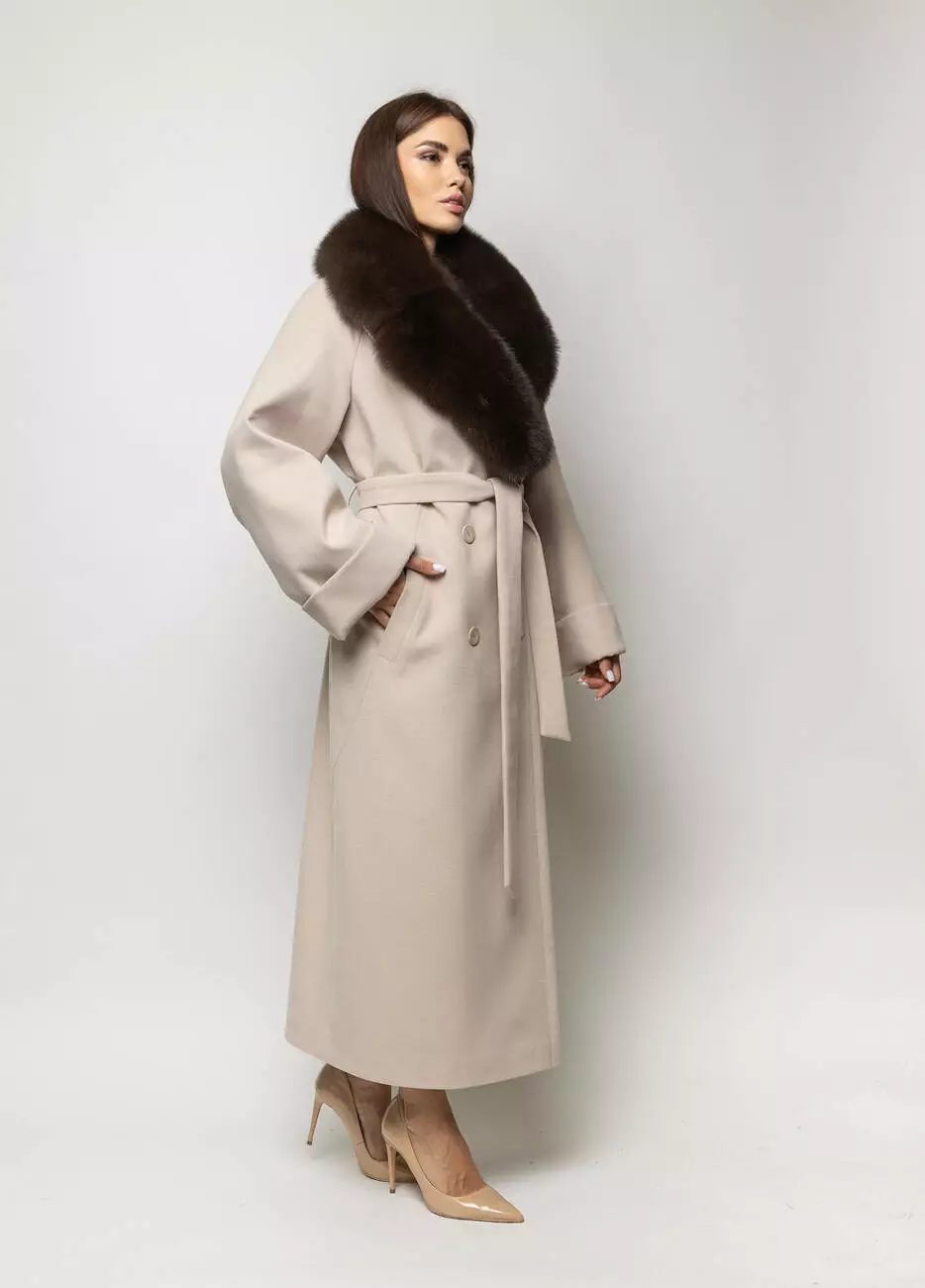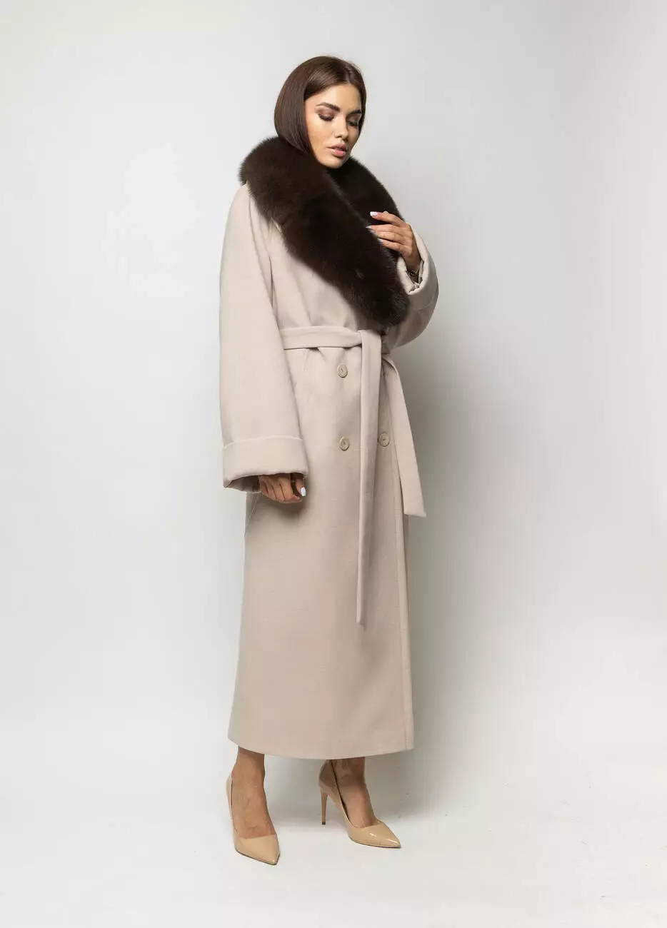 Пальто класичне жіноче Марсель стиль: оверсайз. Пальто двобортне.. Застібка на ґудзиках. Широкий відкладний комір. Хутро натуральне, Кишені листочка. Пояс у комплекті. Довжина спинки 125 см, довжина рукава від горловини 73 см.