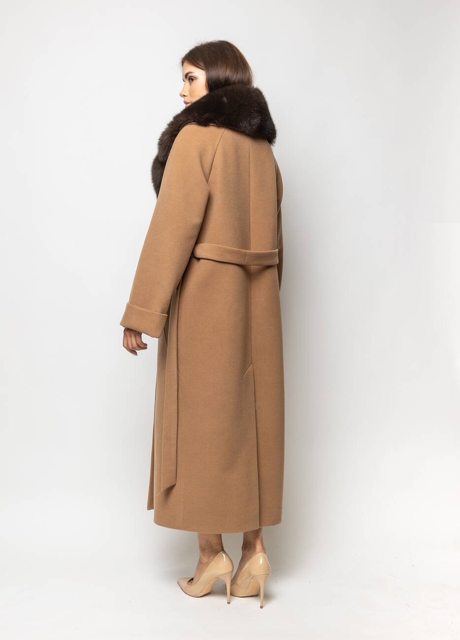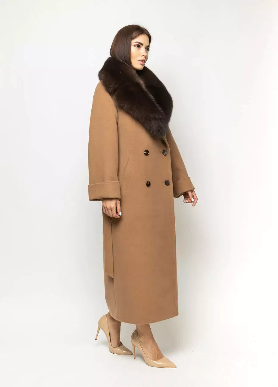 Пальто класичне жіноче Марсель стиль: оверсайз. Пальто двобортне.. Застібка на ґудзиках. Широкий відкладний комір. Хутро натуральне, Кишені листочка. Пояс у комплекті. Довжина спинки 125 см, довжина рукава від горловини 73 см.