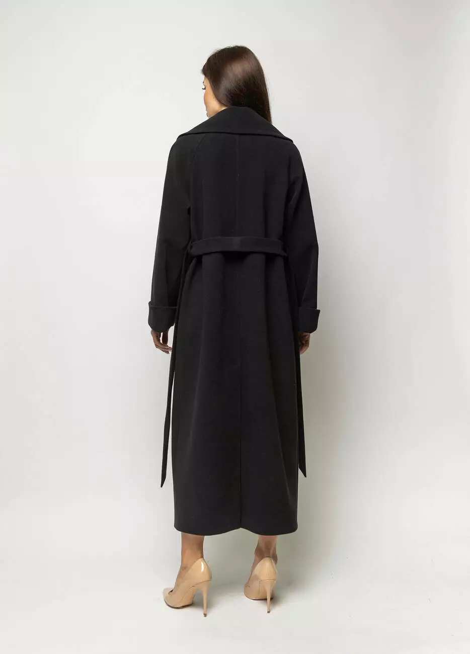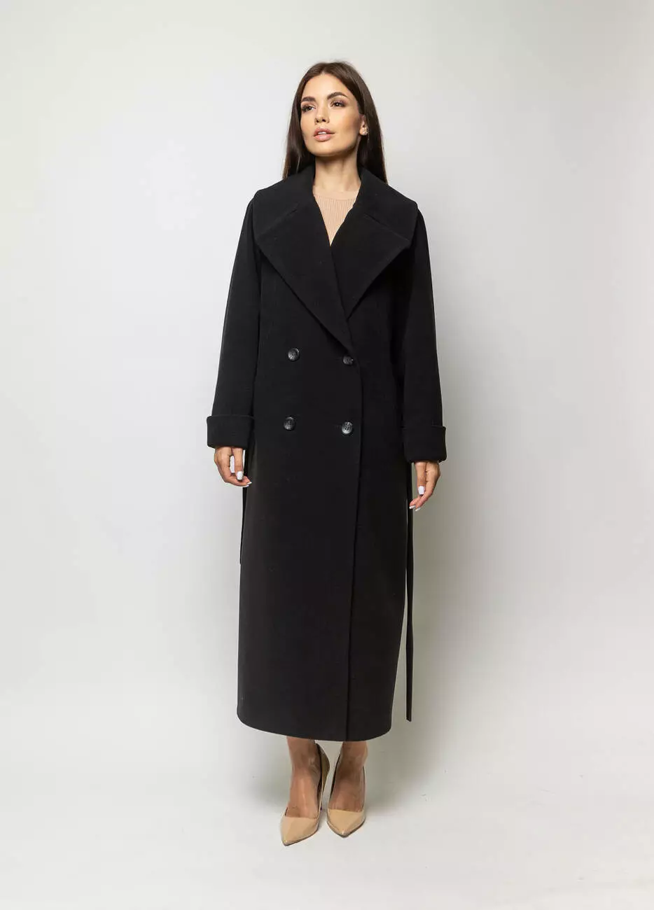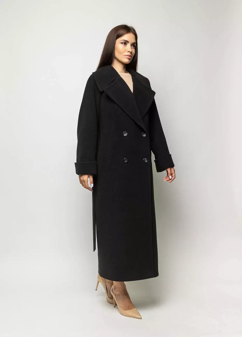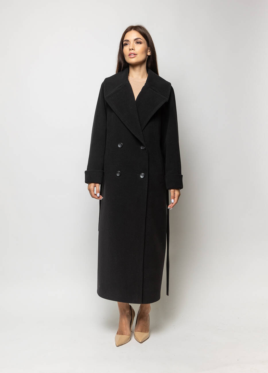 Пальто класичне жіноче Марсель стиль: оверсайз. Пальто двобортне.. Застібка на ґудзиках. Широкий відкладний комір. Кишені листочка. Пояс у комплекті. Довжина спинки 125 см, довжина рукава від горловини 73 см.