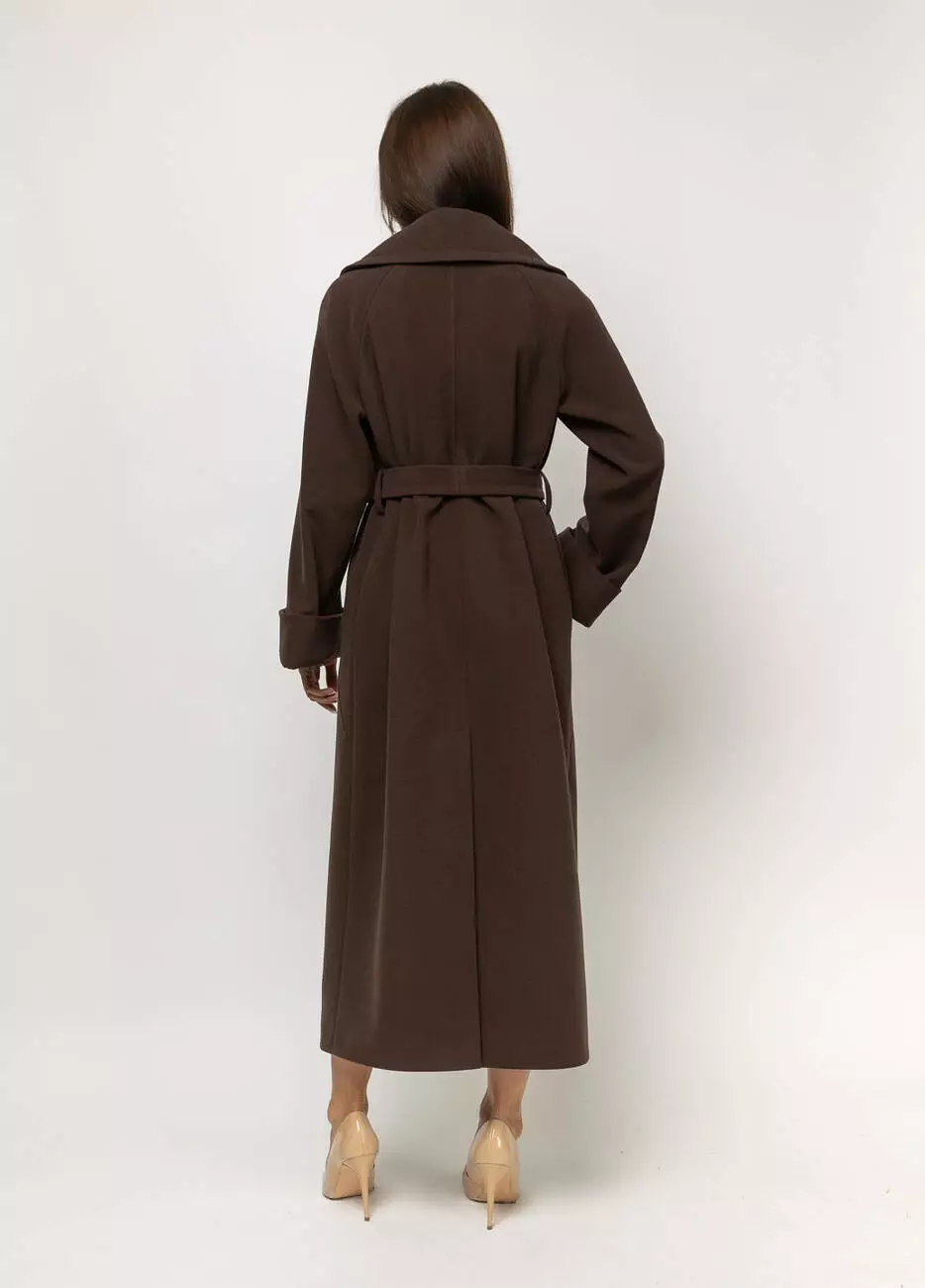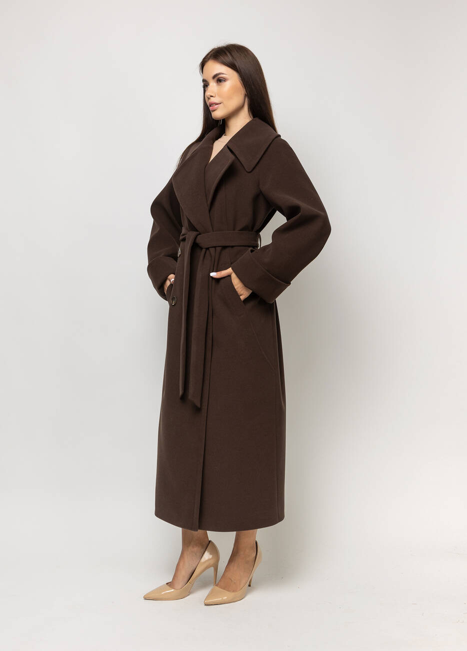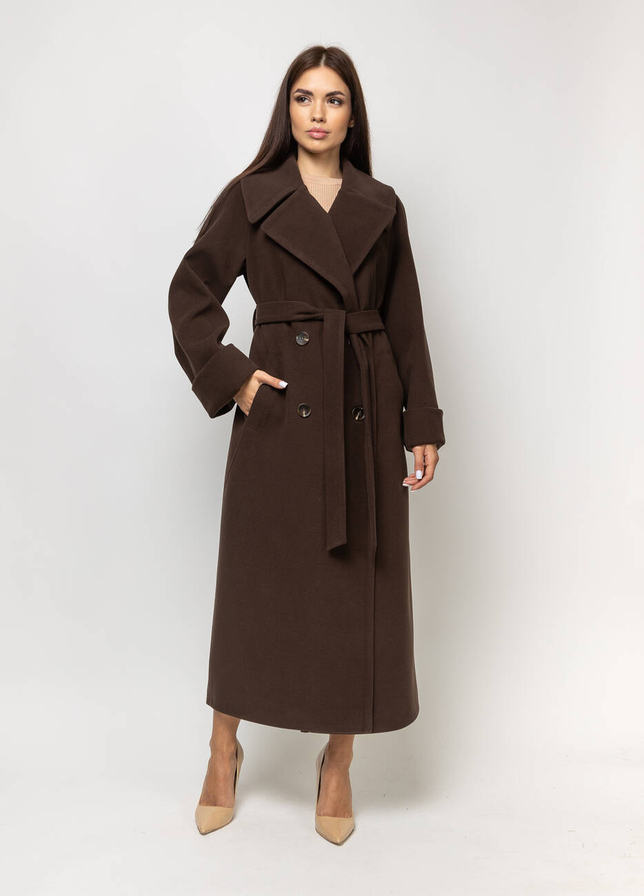 Пальто класичне жіноче Марсель стиль: оверсайз. Пальто двобортне.. Застібка на ґудзиках. Широкий відкладний комір. , Кишені листочка. Пояс у комплекті. Довжина спинки 125 см, довжина рукава від горловини 73 см.