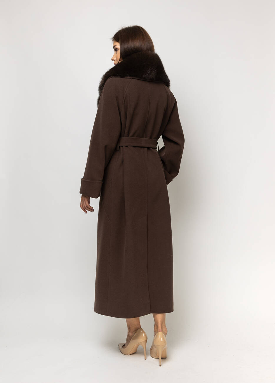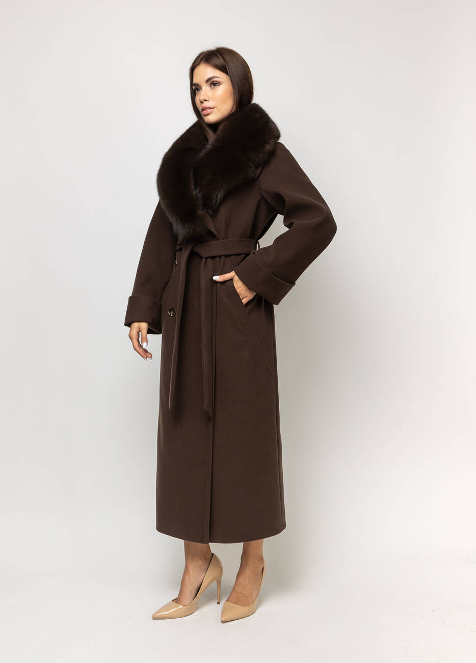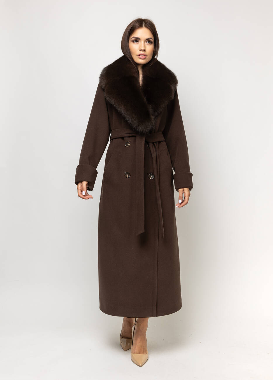 Пальто класичне жіноче Марсель стиль: оверсайз. Пальто двобортне.. Застібка на ґудзиках. Широкий відкладний комір. Хутро натуральне, Кишені листочка. Пояс у комплекті. Довжина спинки 125 см, довжина рукава від горловини 73 см.